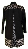 Aus dem Synthetischen Material ist das Wasserfall-Kleid. Das weisse Schmetterlings-Kleid ist und besteht aus Naturfaser, (Maulbeerseide) ist edel, glänzend und ist sehr fein im Griff. Der Mantel ist von zwei verschiedenen Materialien, schwarz und rot sind Seidenstoffe, (Naturfasern) der schwarz mit weissem Muster ist ein Synthetischer Stoff und gibt eine schöne lebendige Kombination. Die Jupe im schwarz-weiss und einen feinen roten Streifen sind aus Synthetischen Stoffe und ein Teil besteht aus Elastan. Die Jacke und das Jupe sind vom gleichen Stoff hergestellt. Der Seidenstoff ist rot und der schwarze Stoff ist Synthetisch. Meine Aspiration ergeben eine ausgezeichnete Wirkung und Formen, durch die lebendigen Farben vom Tukan und Schmetterlinge und ein erfrischender Wasserfall.
